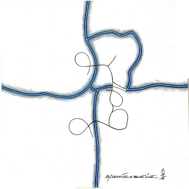 DRAWING A BLUE LINE, 30 x 30 cm, technique mixte