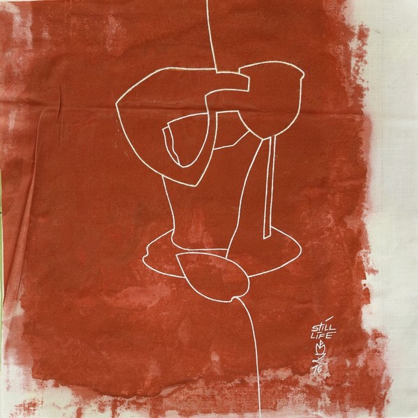 DESSIN SUR FOND ROUGE, 32,5 x 32,5 cm, technique mixte