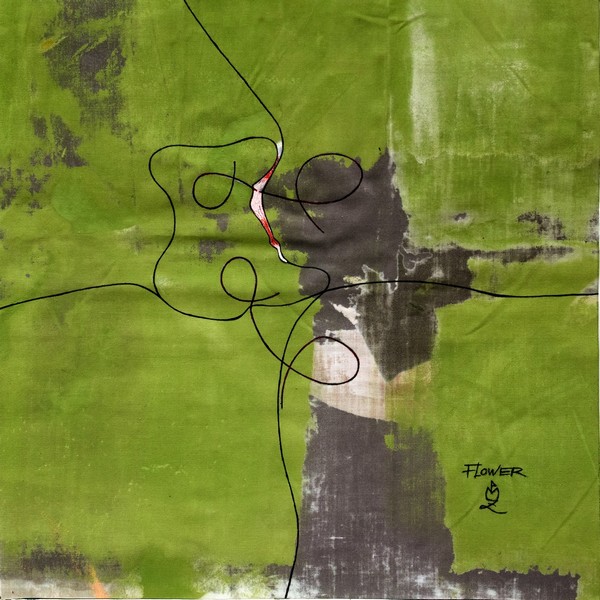 DESSIN SUR FOND VERT, 32,5 x 32,5 cm, technique mixte