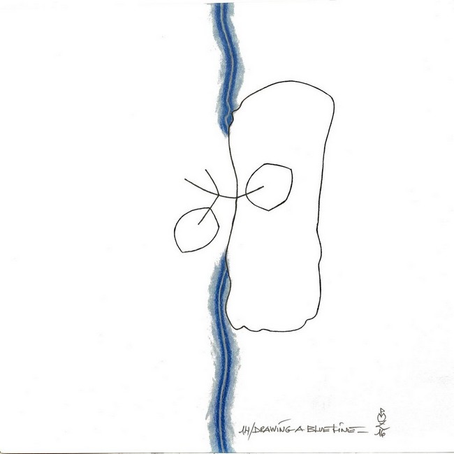 DRAWING A BLUE LINE, 30 x 30 cm, technique mixte