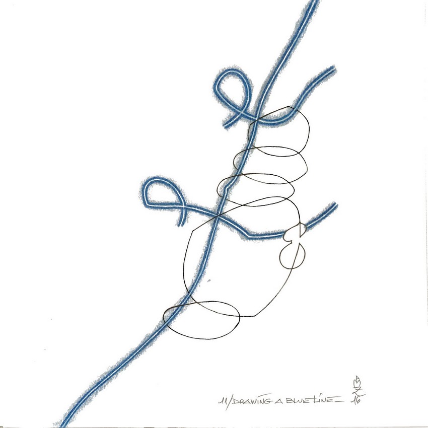 DRAWING A BLUE LINE, 30 x 30 cm, technique mixte