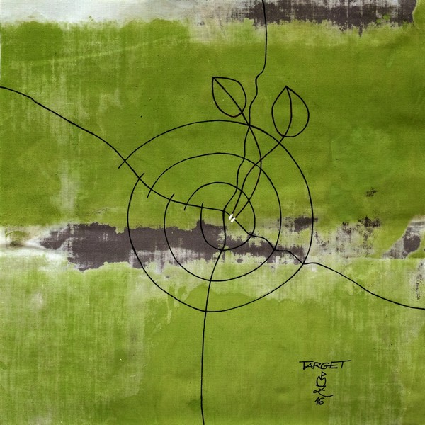 DESSIN SUR FOND VERT, 32,5 x 32,5 cm, technique mixte